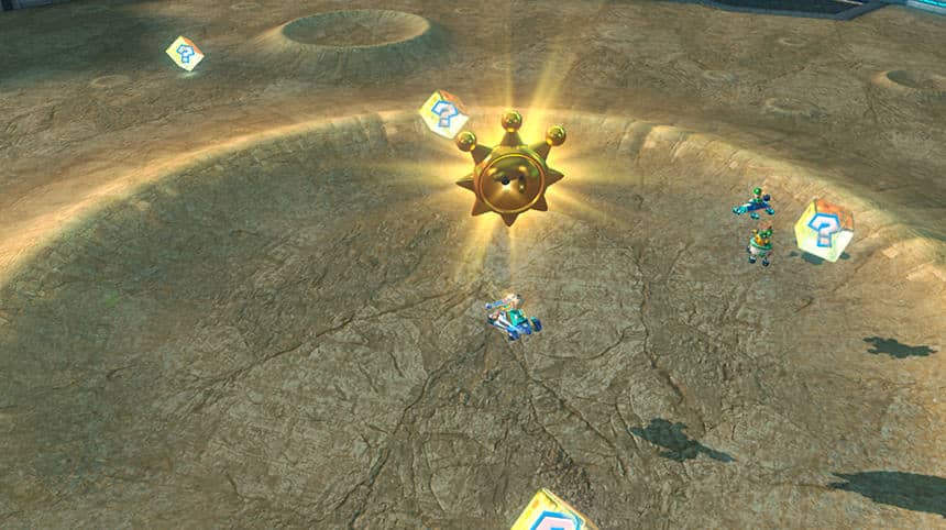 Temporarily transforms you into a Bullet Bill, making you zoom automatically toward the finish line while knocking over any vehicle you make contact with.