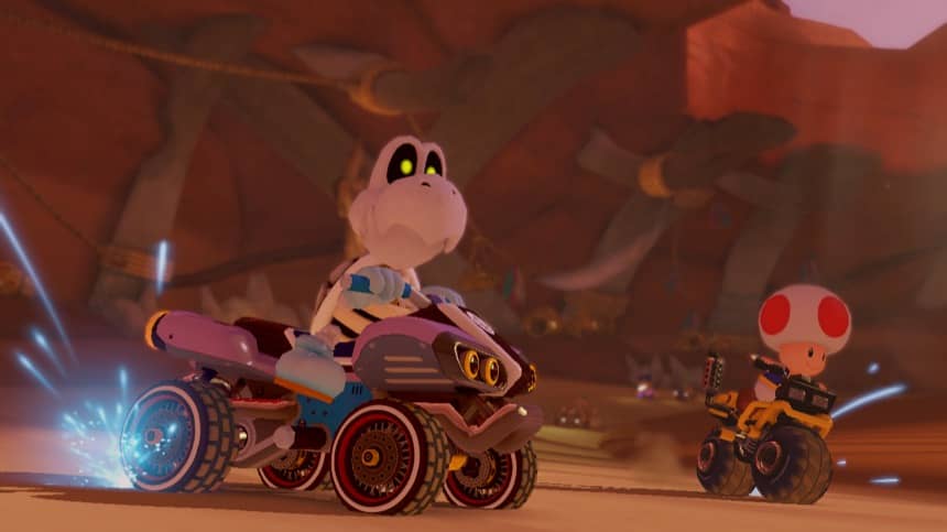 Three Mushrooms that spin around your vehicle. Press [L] to use one of them for a brief speed boost.